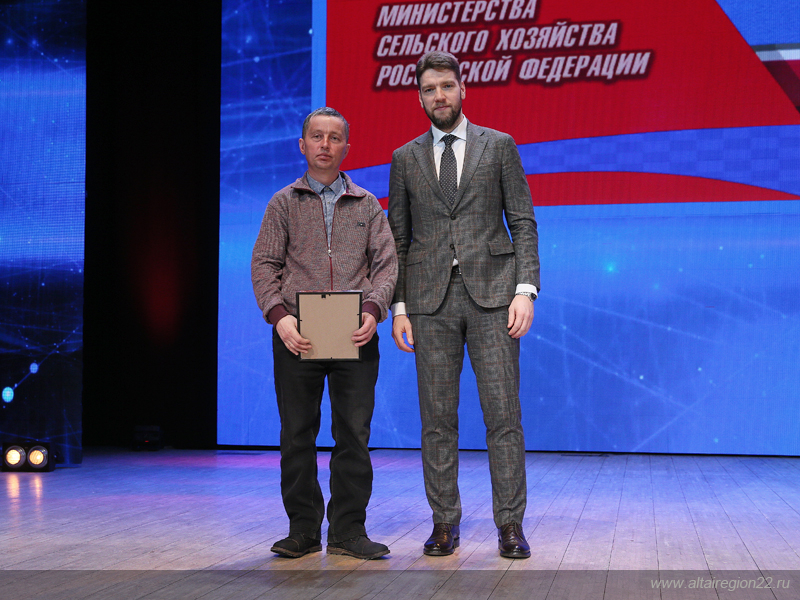 Среди награждённых — рабочий по уходу за животными АО ПР «Чистюньский» Владимир Иванович Габов (Топчихинский район). Ему вручена Благодарность Министерства сельского хозяйства Российской Федерации. У Владимира Ивановича — 30 лет трудового стажа. Он обслуживает дойное стадо в количестве 187 голов. Продуктивность закреплённого за ним поголовья в 2022 году составила 7791 килограмм молока.