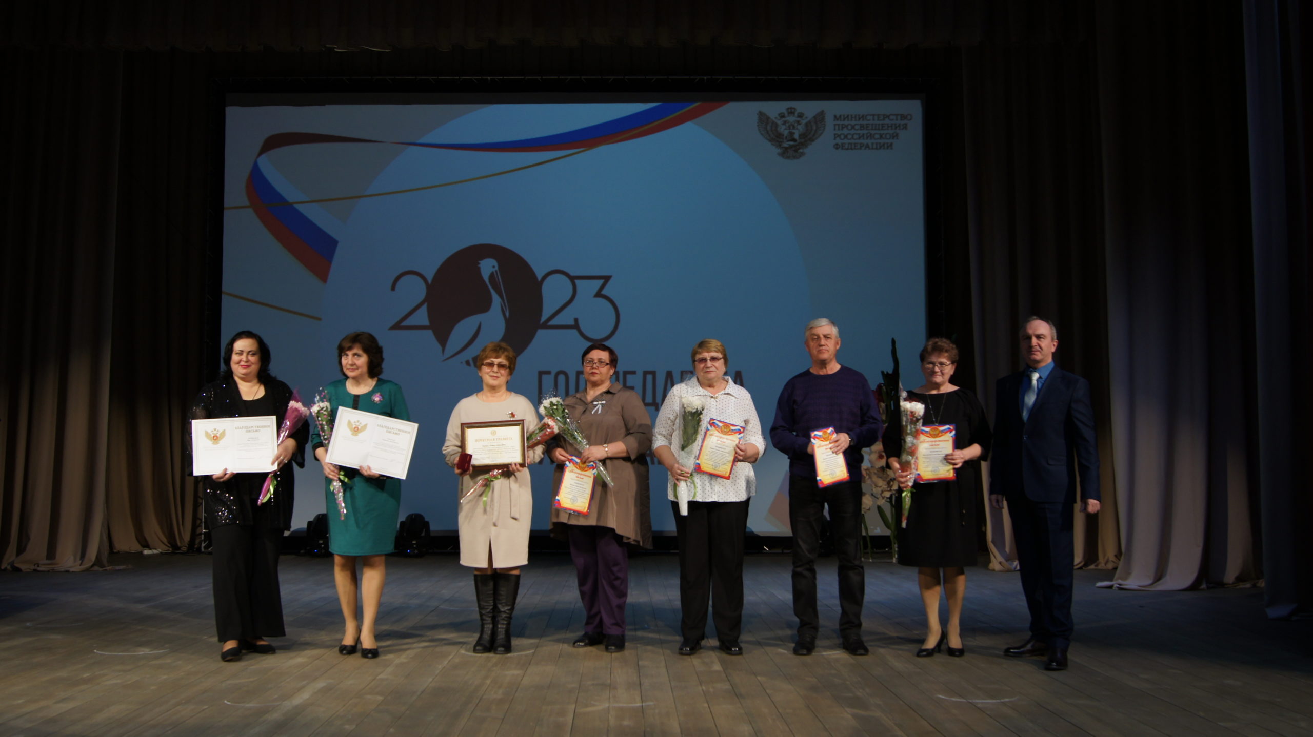 – С праздником, уважаемые педагоги, ветераны педагогического труда, гости и приглашённые! Начиная с 2008 года Президентом Российской Федерации В.В. Путиным год посвящается одной теме. Так, 2010 год был объявлен Годом Учителя. А сегодня в этом замечательном, заново отстроенном Центральном Доме культуры мы торжественно открываем 2023 год – Год педагога и наставника.