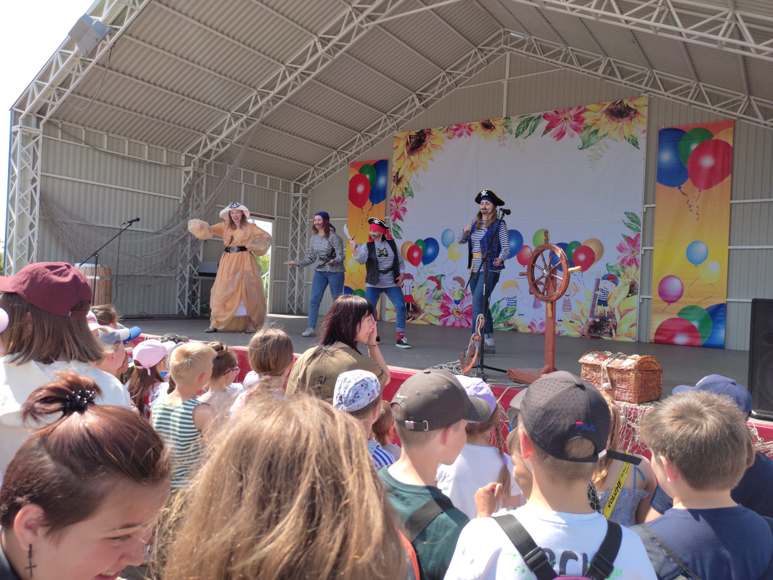 В 14.30 на большой сцене маленького пиратского острова зазвучала музыка, и все ребята поспешили к ней. Весёлые пираты (Надя Игнатьева, воспитанница театрального объединения «Ералаш», Олеся Геннадьевна Исупова, руководитель изостудии «Акварель», Татьяна Владимировна Медведева, методист ДЮЦ, Анна Владимировна Климова, руководитель волонтёрского объединения «От сердца к сердцу») пригласили ребят отправиться навстречу приключениям. Пираты играли с ребятами в весёлые игры, устраивали конкурсы, которые помогали им в путешествии по станциям-островкам, где они в итоге должны были собрать кодовое слово праздника – КАНИКУЛЫ.