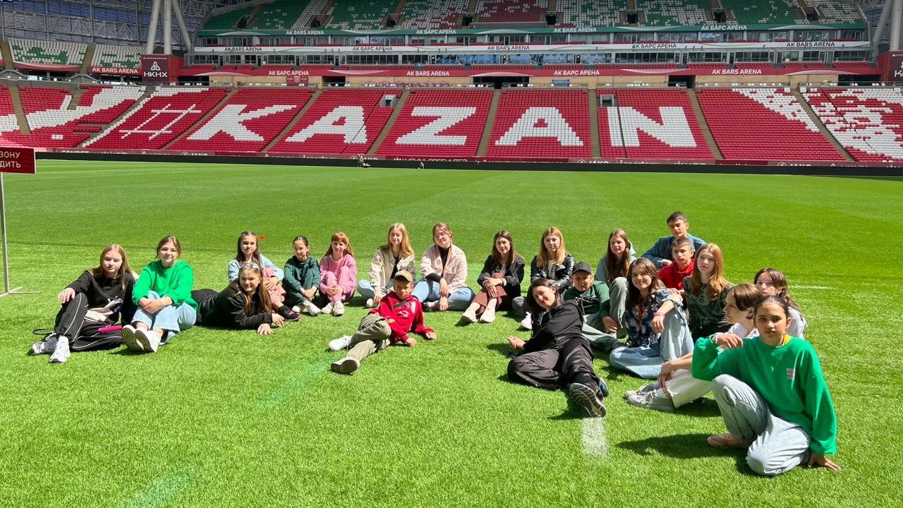 Стадион расположен в живописном месте Ново-Савиновского района на берегу реки Казанка. «АК Барс Арена» имеет интересный дизайн и самый большой медиафасад в Европе, стадион является украшением города. Нам удалось заглянуть в раздевалку футболистов, присесть на кресла, где когда-то сидели легенды спорта: Роналду, Месси, Дзюба и многие другие. Мы приняли участие в пресс-конференции и вышли на поле стадиона. Его невероятно большие размеры и функциональные возможности нас очень впечатлили.