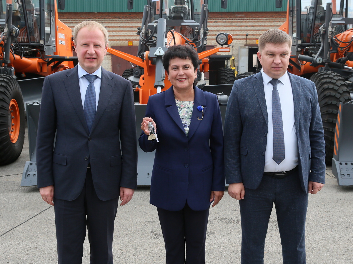 Церемония передачи 23 единиц техники прошла в Новоалтайске, участие в ней принял губернатор Виктор Томенко. Он лично проверил технику, забравшись в кабину фронтального погрузчика, который будет работать на дорогах Тальменского района. О том, как работает погрузчик, главе региона рассказал водитель Николай Авсин.