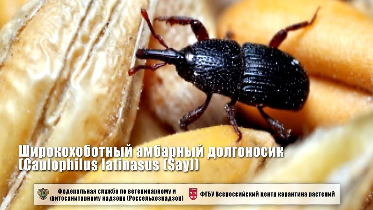 Одним из наиболее вредоносных видов является широкохоботный амбарный долгоносик Caulophilus latinasus (Say). В отличие от родственных видов долгоносиков – монофагов, способен повреждать не только семена злаковых и зернобобовых культур, а также продукты их переработки (муку, крупу, макаронные изделия), но также рис, вяленые плоды инжира, цикорий, каштаны, желуди, корицу и косточки авокадо. При этом вредитель загрязняет все хранящиеся продукты отходами своей жизнедеятельности.