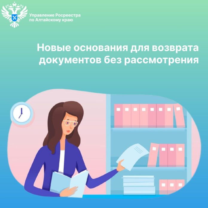 Причины, которые могут привести к возврату заявления и документов, представленных для осуществления государственного кадастрового учета и государственной регистрации прав, без рассмотрения, закреплены в статье 25 Федерального закона Российской Федерации от 13.07.2015 № 218-ФЗ «О государственной регистрации недвижимости».[1]