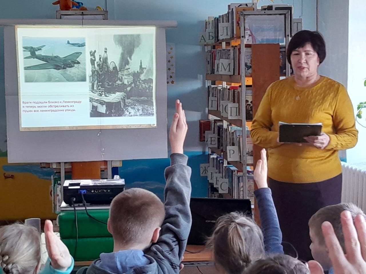 Ведущий библиотекарь Людмила Владимировна Филатова подготовила обзор «Непокорённый Ленинград», был продемонстрирован видеоматериал о трагических страницах жизни блокадного Ленинграда.