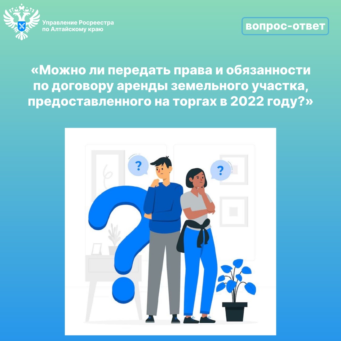 Житель п. Троицкий Михаил Петрович И. задает вопрос: Можно ли передать права и обязанности по договору аренды земельного участка, предоставленного на торгах в 2022 году?