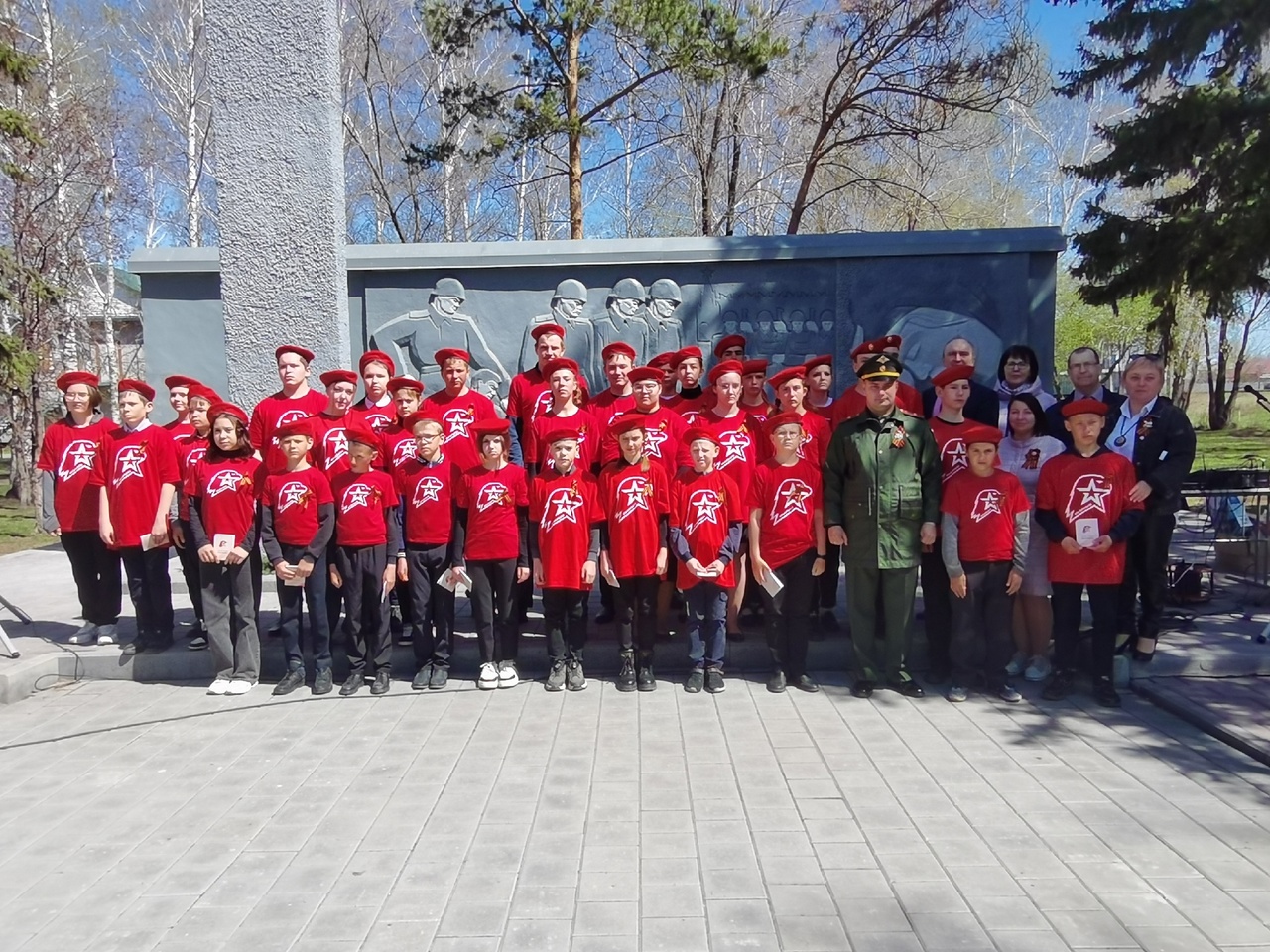 После торжественного принятия присяги юнармейцы присоединились к акции «Сад Победы». Топчихинский сад Памяти находится на территории мемориала землякам, погибшим в годы Великой Оте- чественной войны. В этом году в честь 79-летия Победы в Великой Отечественной войне было высажено 79 берёз.
