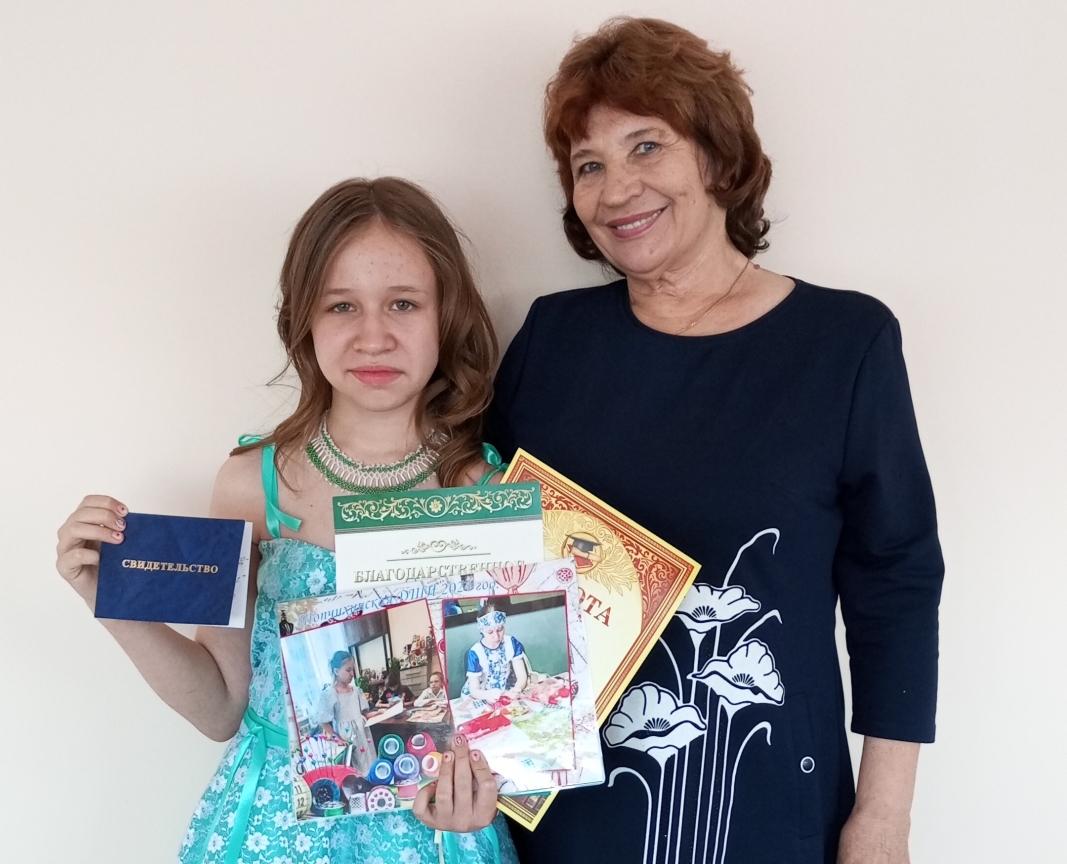 Для ученицы Миланы Трушаковой это дефиле стало особенно значимым и запоминающимся, ведь Милана – выпускница ДШИ. У юной рукодельницы и мастерицы пройдены все этапы обучения этому сложному, кропотливому, трудоёмкому труду, получено Свидетельство об окончания Детской школы искусств. Не исключено, что Милана не оставит своё любимое занятие и даже последует по стопам своего преподавателя Л.Н. Водопьяновой. Декоративно-прикладное творчество – очень заразительное, стоит попробовать один раз, и не поймёшь, как незаметно втянулся в этот процесс. Хочется пожелать Милане и её преподавателю идти по жизни так, чтобы творческая искра помогала во всём!
