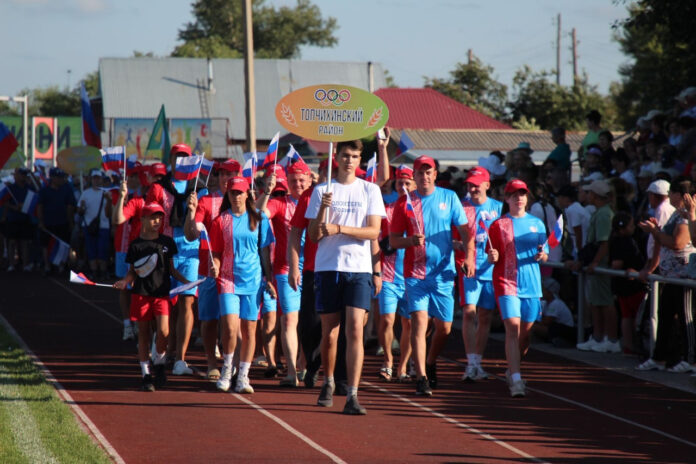 Команду Топчихинского района представляла делегация из 32 спортсменов. Руководил делегацией глава района Денис Сергеевич Тренькаев.