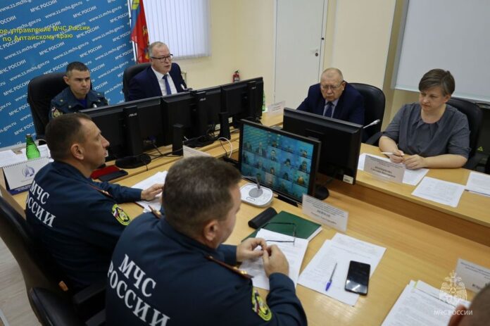В Главном управлении МЧС России по Алтайскому краю под председательством заместителя Председателя Правительства региона Игоря Степаненко и начальника ГУ МЧС России по Алтайскому краю Александра Макарова состоялось видеоселекторное совещание с руководителями муниципалитетов.